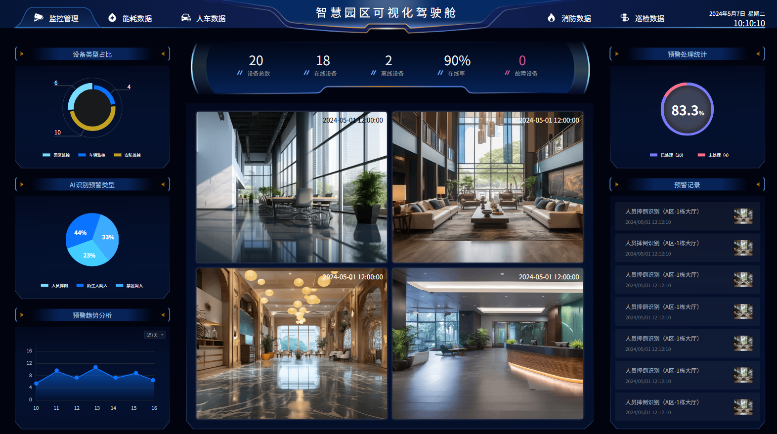 集成视频监控、门禁系统、报警系统等,形成全方位的安全监控网络,确保园区安全。