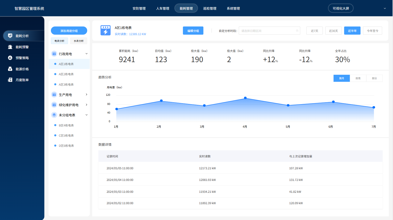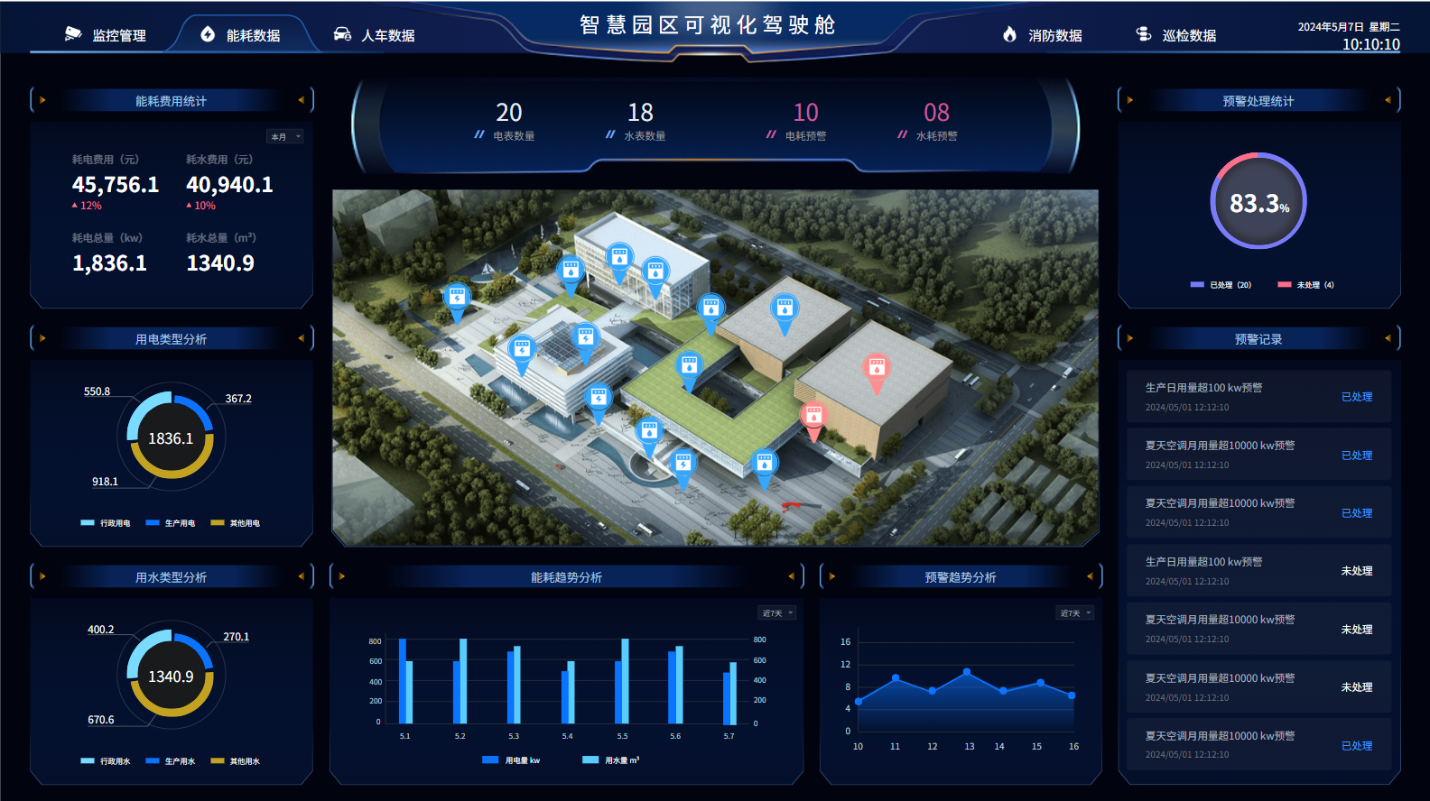 监测和控制园区内的能源消耗,包括电力、水、燃气等,实现能源的智能调度和优化配置。