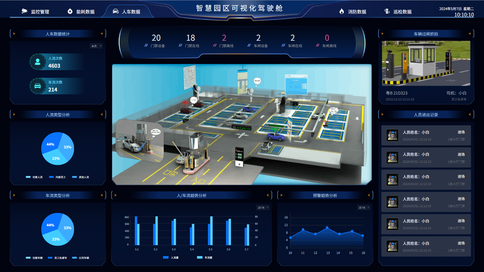 实现人脸识别、车牌识别等智能识别技术,提高园区入口和关键区域的安全管理水平。
