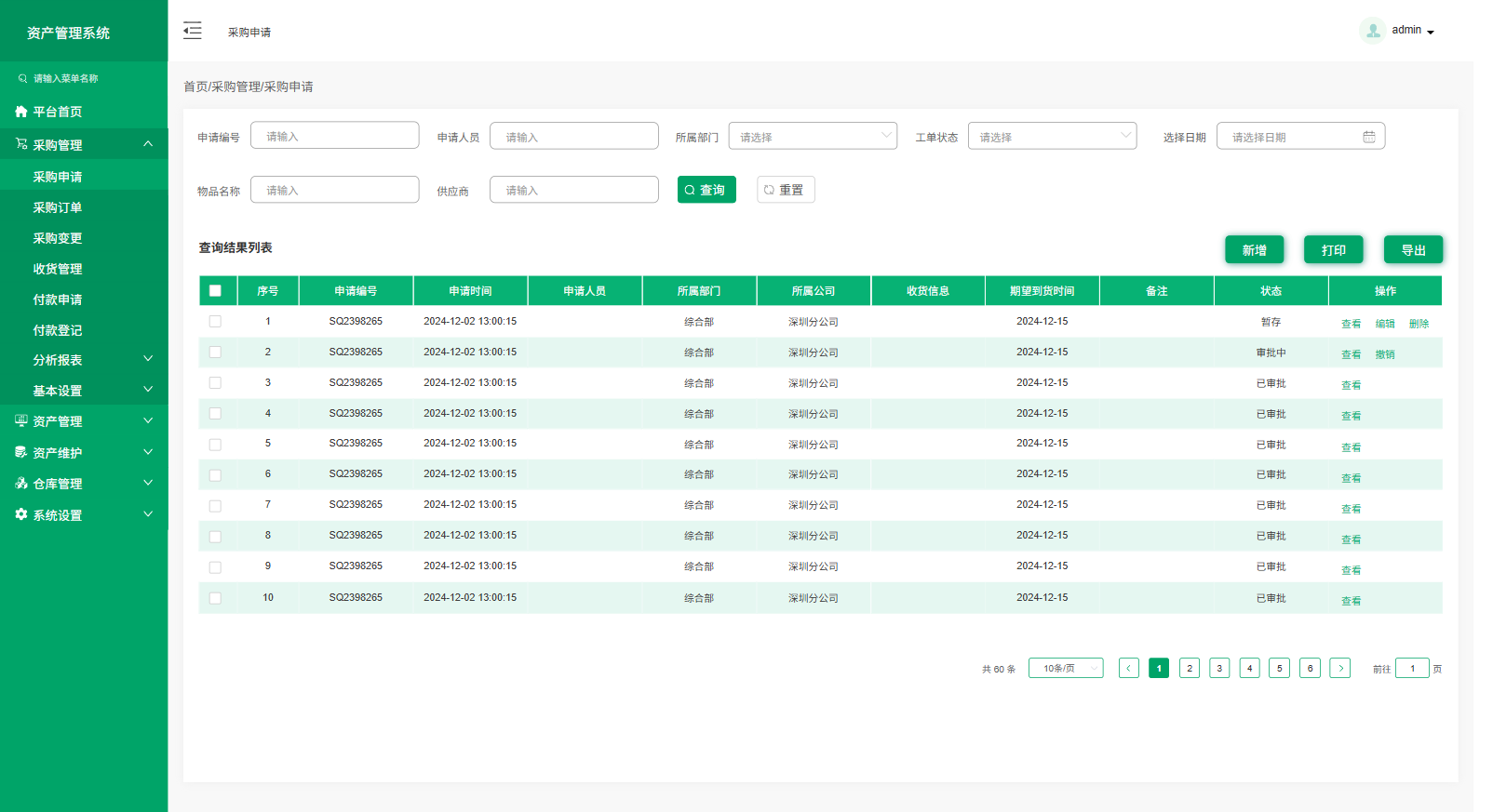 (二)采购管理:从需求提出到采购完成,全程跟踪记录,确保采购流程透明化。
