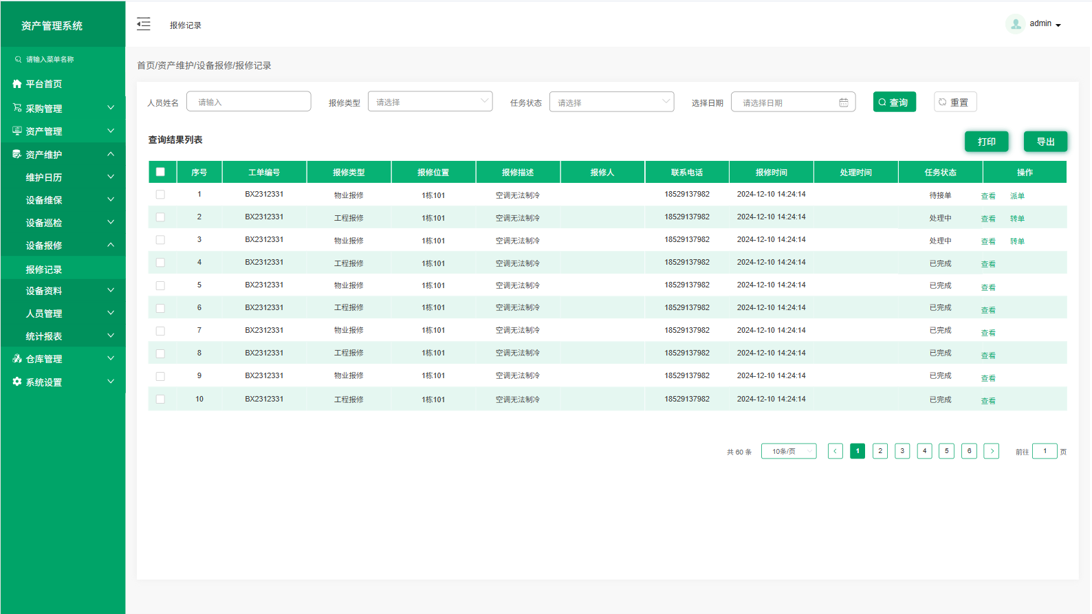 (四)维护与维修管理:对设备进行定期维护计划安排,及时处理故障报修,延长资产使用寿命。